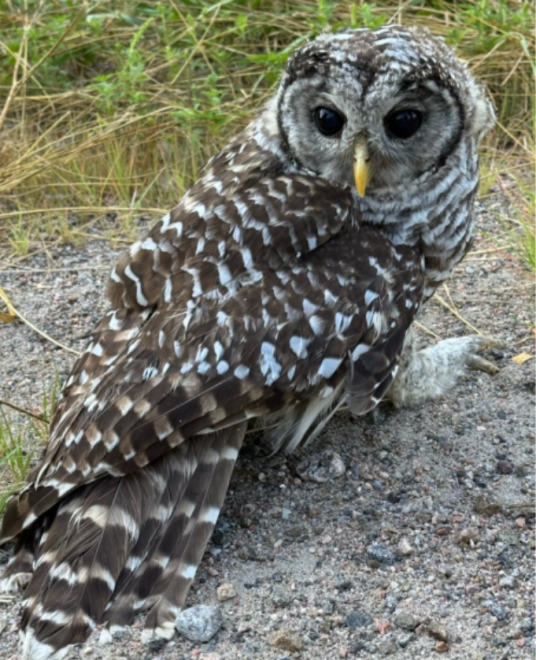 One such victim was a female barred owl, pictured below, who came into the care of Woodlands Wildlife Sanctuary last September, apparently after being struck by a vehicle. Her body was sent to the Canadian Wildlife Health Cooperative for necropsy, where three different rodenticides were found in her system. Her story illustrates how pervasive the reach of these poisons truly is — and how animals already made vulnerable by one harm are often contending with another.